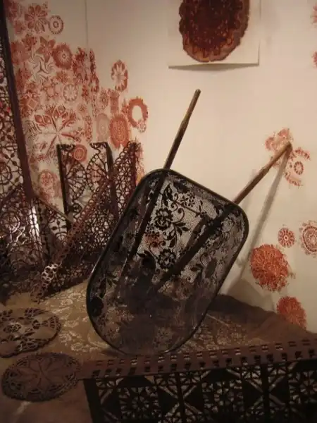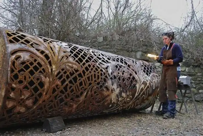 Посмотрите, какие шедевры делает эта хрупкая девушка- кузнец. Старым, уже отслужившим, казалось бы свое предметам, она дарит новую яркую жизнь. Сваркой, как вязальщицы коклюшками, плетет из них великолепное тонкое кружево.