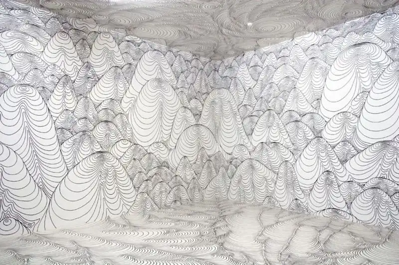 Хайке тщательно планирует и управляет белыми пространствами между каждой линией, создавая 3D ощущение.