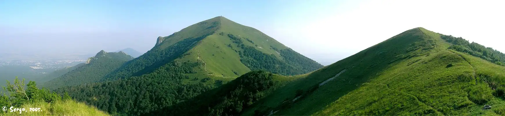 Гора Бештау- пятиглавая гора на Кавказских Минеральных Водах около города Пятигорск. По её вершинам и скалам приятно побродить и посмотреть открывающиеся с неё виды. Так же в недрах горы пролегают самые длинные искусственные штольни России общей протяженностью 240 км (это рудник №1 по добыче урановой руды, бывший под личным контролем Л. Берии).