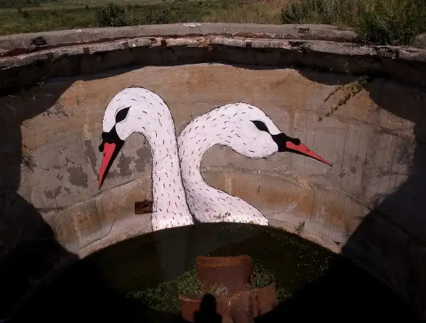 Московский стрит-артер Женя 0331с осваивает не только стены зданий, но рисует и в технологических колодцах, на цистернах и прочих не самых популярных среди уличных художников поверхностях.