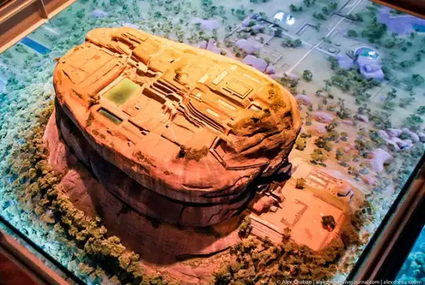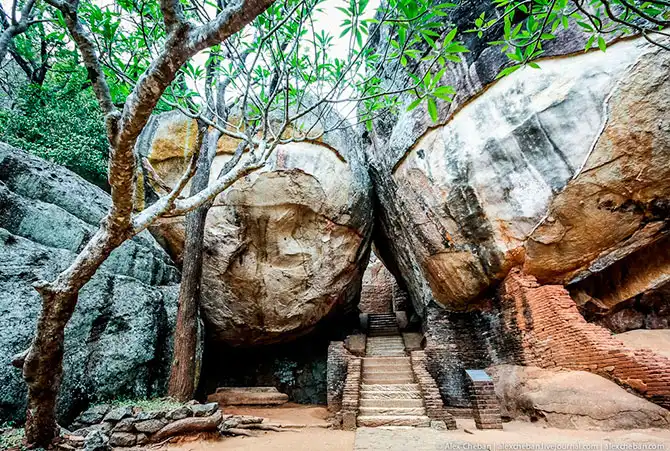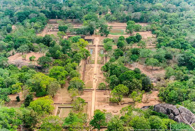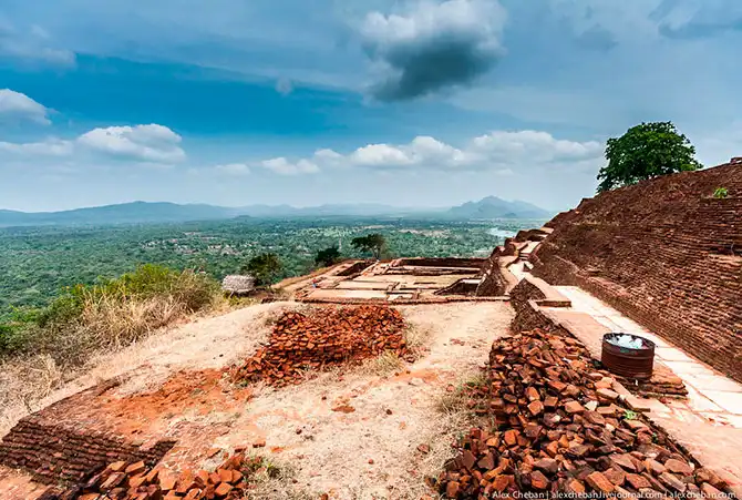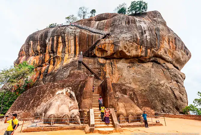 Сигирия (что значит «львиная скала») , Шри-Ланка. Здесь город построен прямо на вершине скалы посреди относительно ровной местности. Сигирия — скальное плато, возвышающееся на 370 метров над уровнем моря и около 170 метров над окружающей равниной в самом центре острова Шри-Ланка. С 1982 г. Сигирия состоит под охраной ЮНЕСКО как памятник Всемирного наследия.