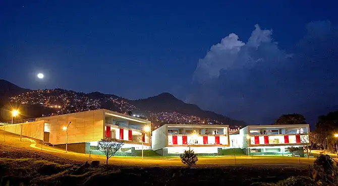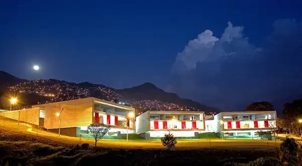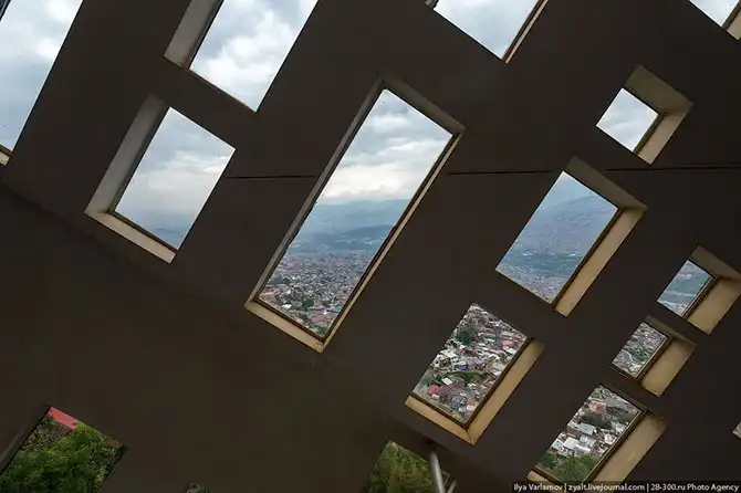 Начнем с библиотеки в районе Санто Доминго. Спроектировал это здание архитектор Джанкарло Мадзанти. Библиотека напоминает 3 огромных камня, на вершине холма, покрытого трущобами. Кстати, для того, чтобы построить эту библиотеку пришлось переселить 146 домов. Представляете, какая тут плотность застройки.