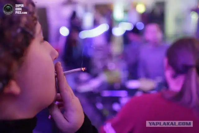 Парень раскуривает косяк в первый день работы клуба Club 64 в Денвере, штат Колорадо.