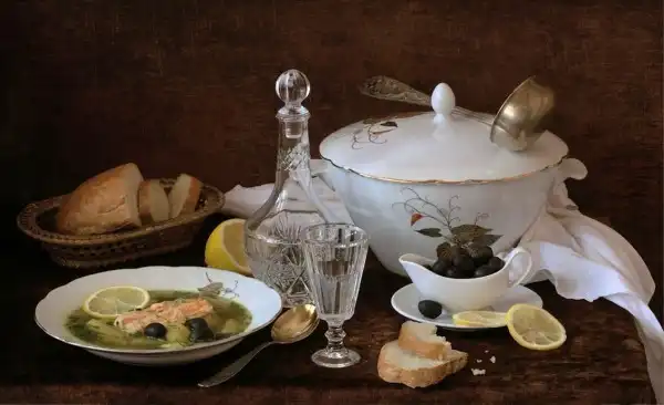 УХА ИЗ СТЕРЛЯДИ ИЛИ ОСЕТРИНЫ С ШАМПАНСКИМ