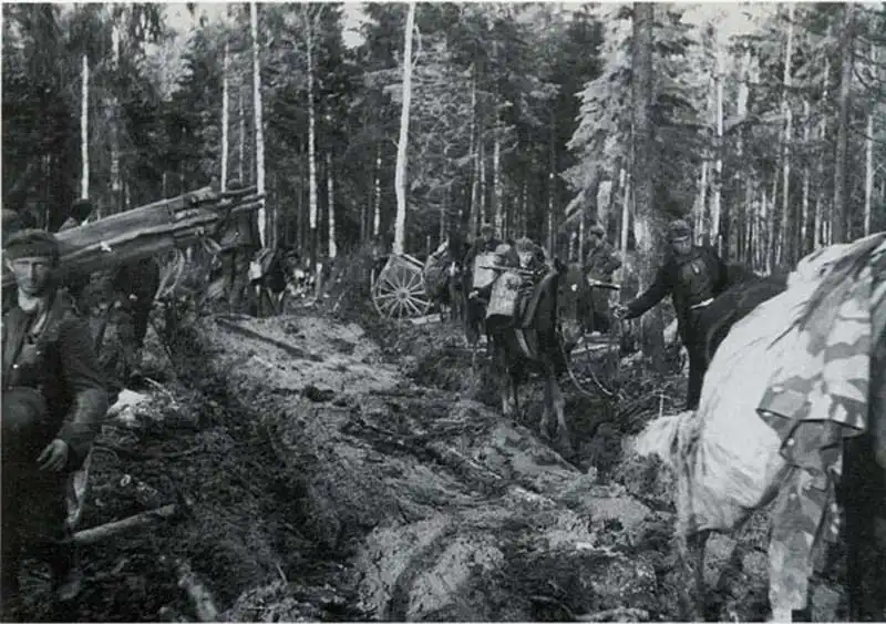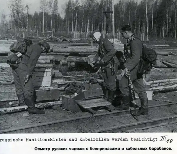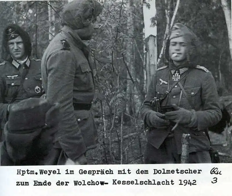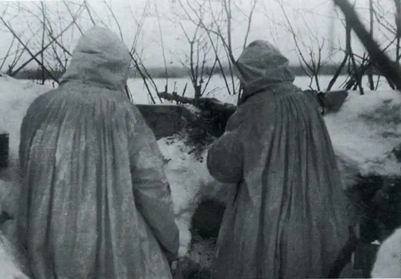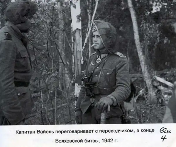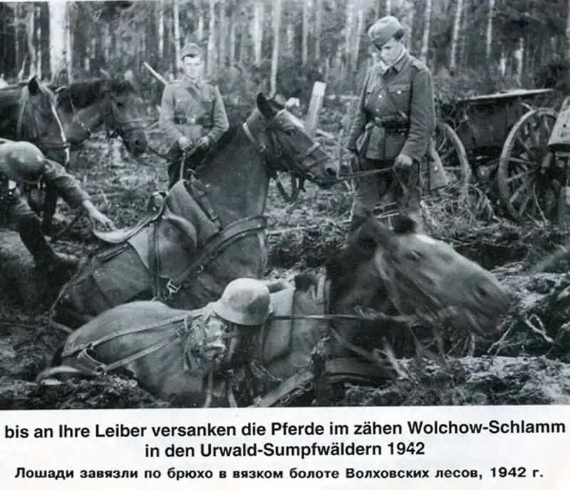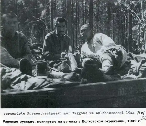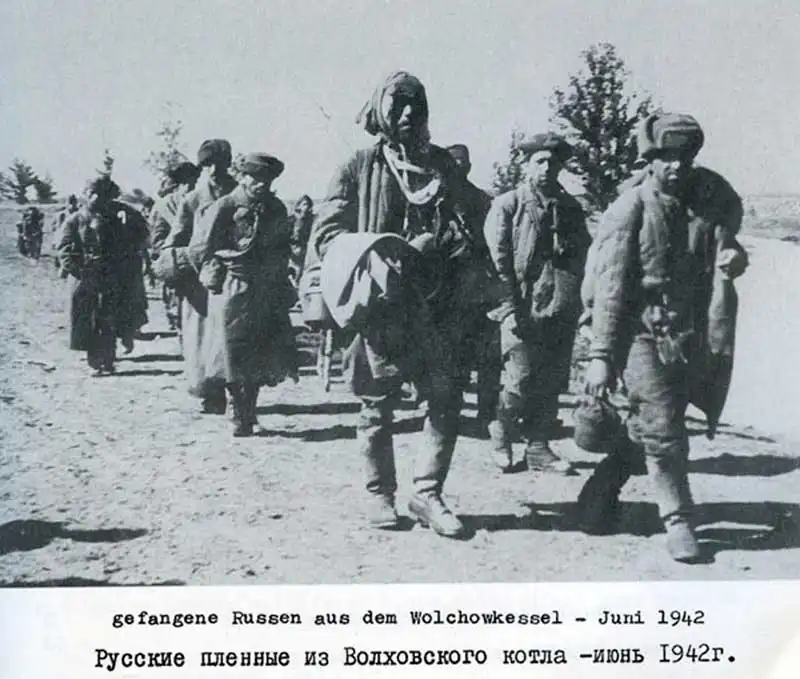 оврага и цепью побежали в Теремец. Руки у бойцов были сомкнуты впереди и спрятаны в рукава, а винтовки висели у них на ремнях. Мы тоже все по команде комбата «Вперед!» бросились на лед Волхова и побежали к Теремцу. На Волхове весь снег был исчерчен полосами от пуль перекрестного огня пулеметов, образуя квадраты по 40—50 см. Такой плотный огонь не оставлял никакой надежды на выживание».
