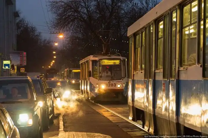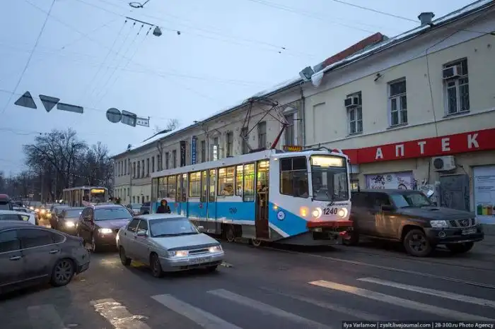 Трамвай здесь единственный общественный транспорт. До ближайшей станции метро почти километр.