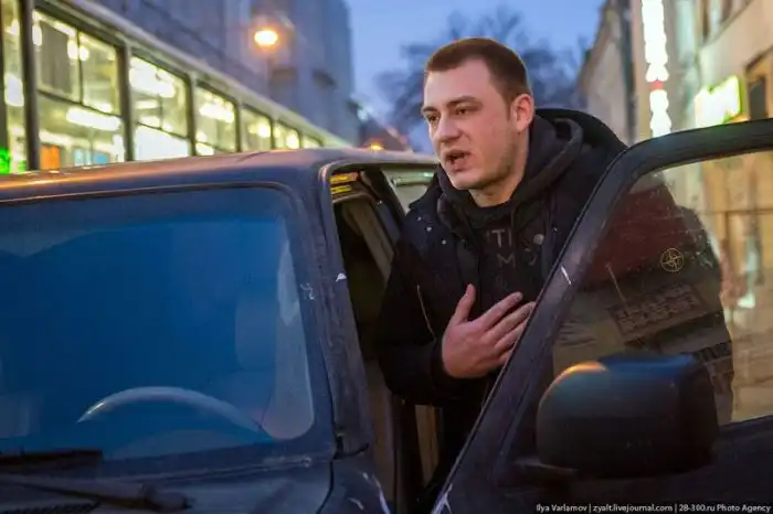 Когда его уже собирались бить, он сказал: "А я тут причем? Меня попросили перегнать машину, она вообще не моя, хозяин до сих пор в кафе сидит!"