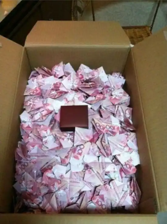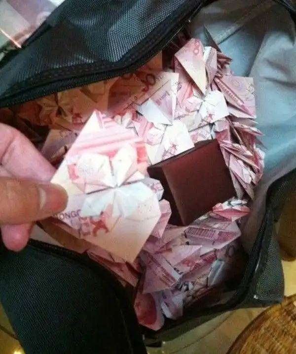 собственноручно делал оригами в виде сердец из купюр по 100 юаней (около 16$).