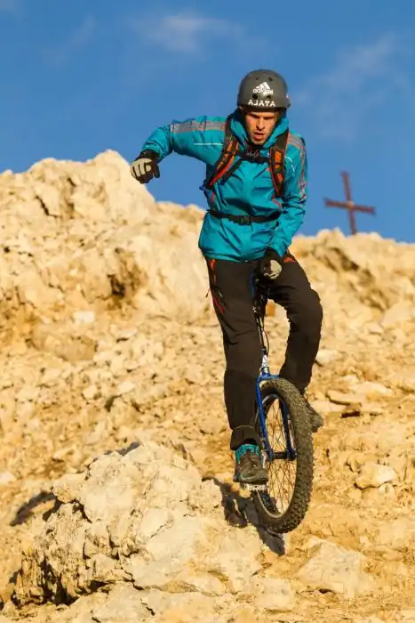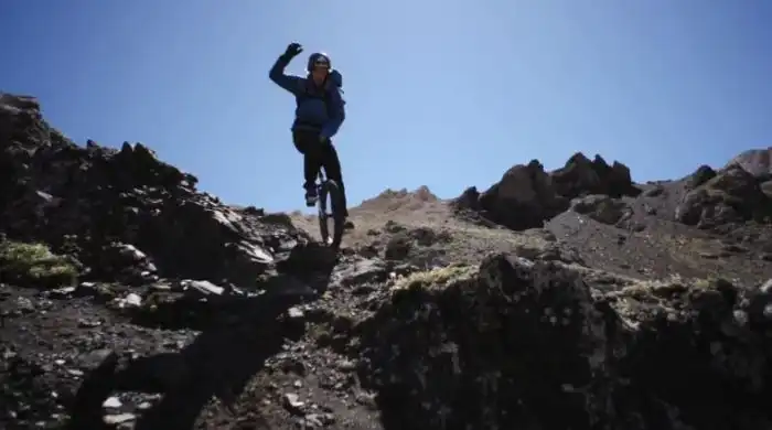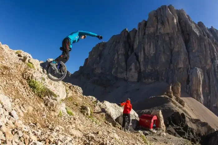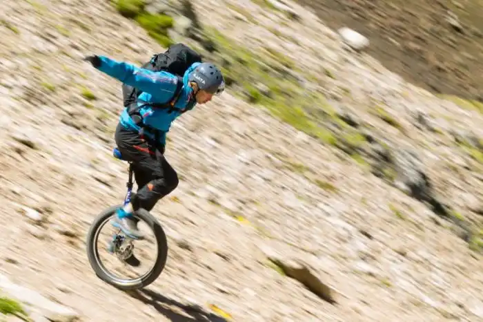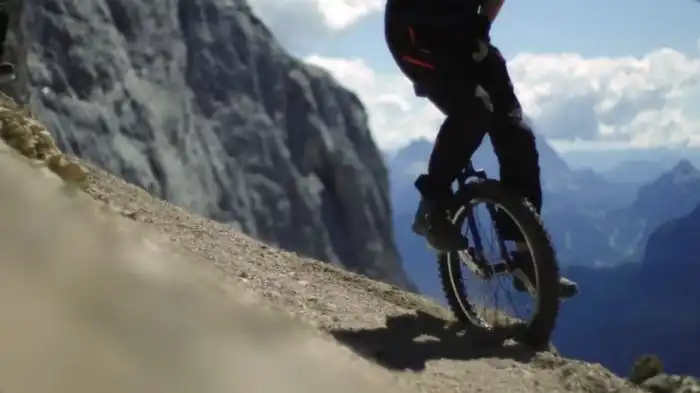 Они идут на огромный риск, катаясь по горам на одноколесном велосипеде.