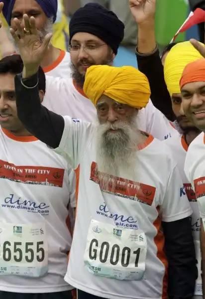 Фауджа Сингх стал марафонцем в 89 лет после смерти супруги и одного из сыновей. Он принял участие в 9 мировых марафонах, в том числе в Лондоне, Нью-Йорке и Торонто. Фауджа участвовал в эстафетах Олимпийского огня в Афинах (2004) и Лондоне (2012).