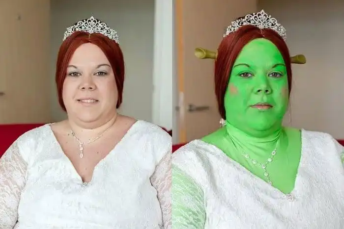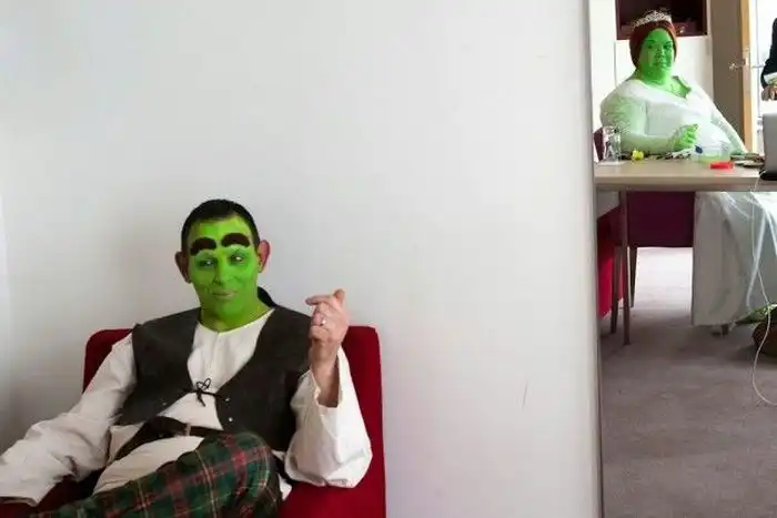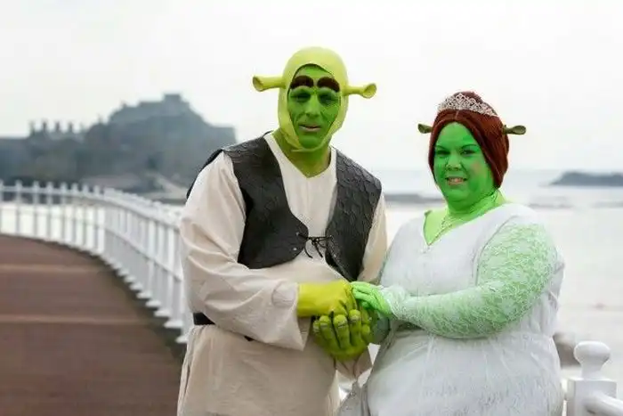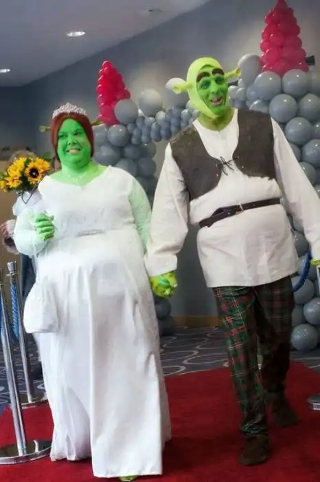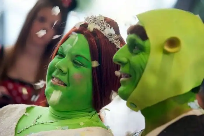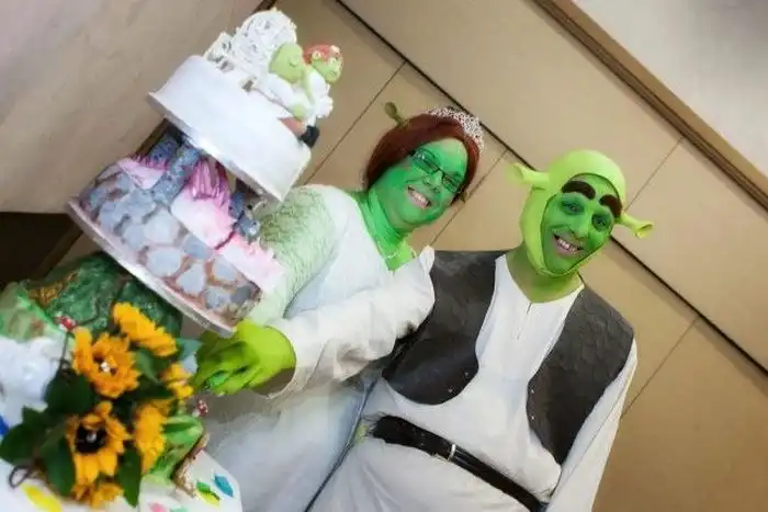 Молодожены были одеты в костюмы Шрека и Фионы, а на свадьбе присутствовали