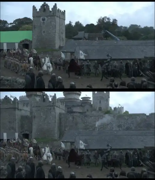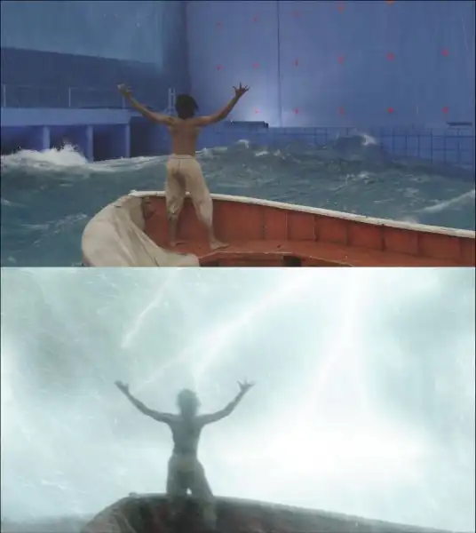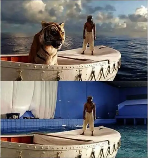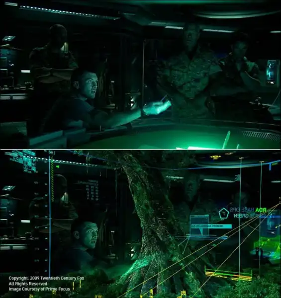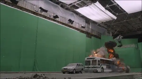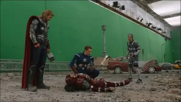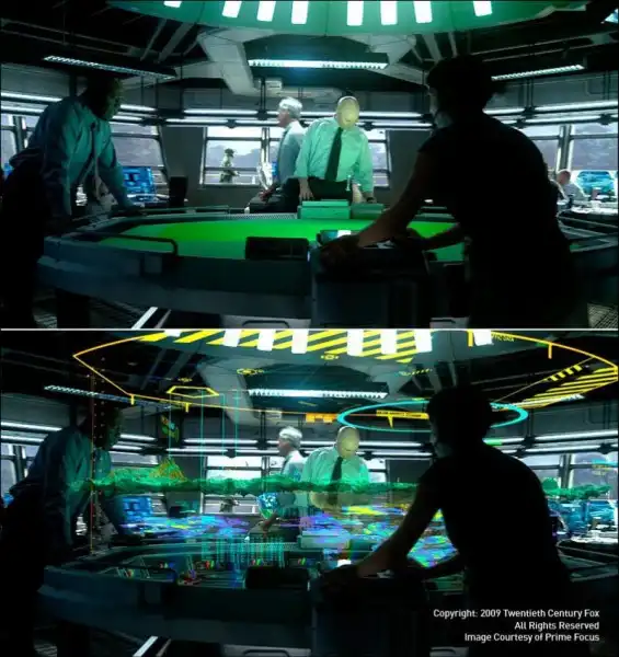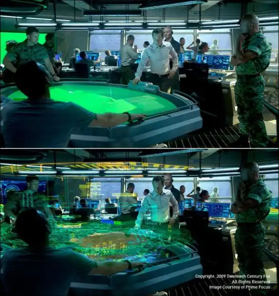 А что же видят актеры? Порой ничего из того, что видит зритель. Никаких фантастических пейзажей, древних замков, космических кораблей и прочего. Только обтянутые зеленой или синей тканью щиты, необходимые для технологии Chromakey — технологии совмещения реально отснятых кадров с нарисованными.