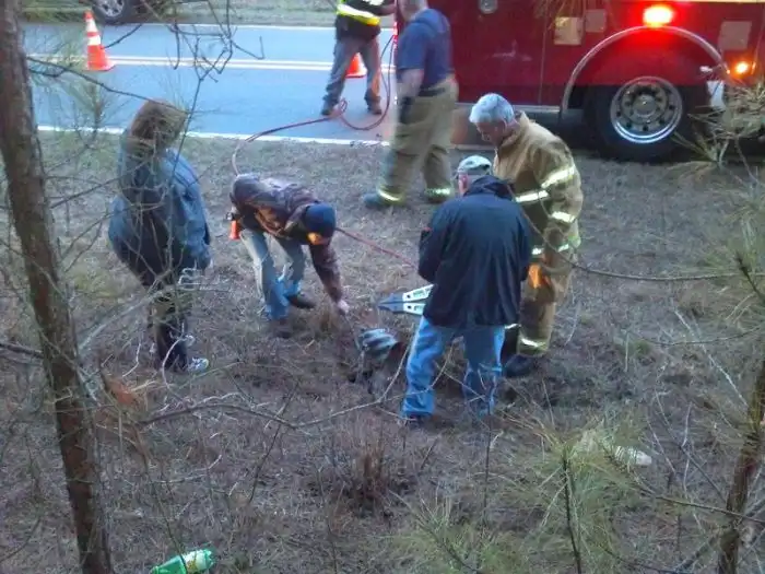 Присмотревшись повнимательнее, люди увидели в трубе встревоженную мордочку Кэти.