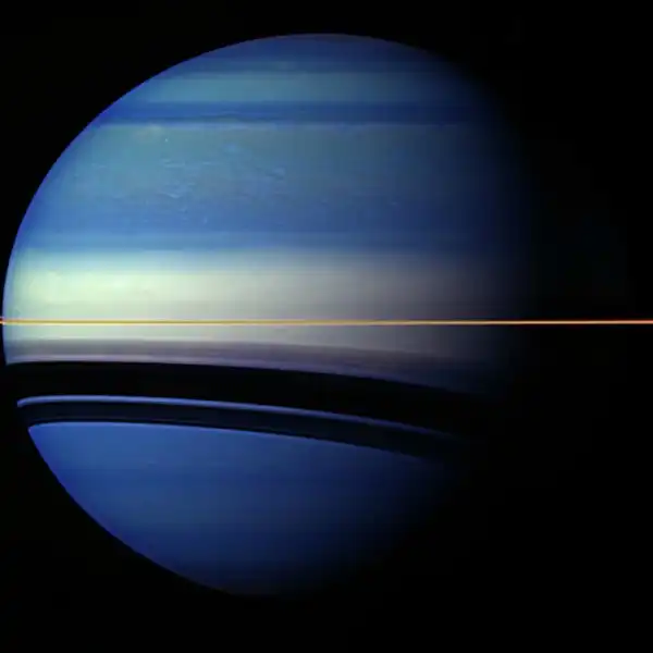 Огромная тень от планеты ложится на тончайшие кольца Сатурна.