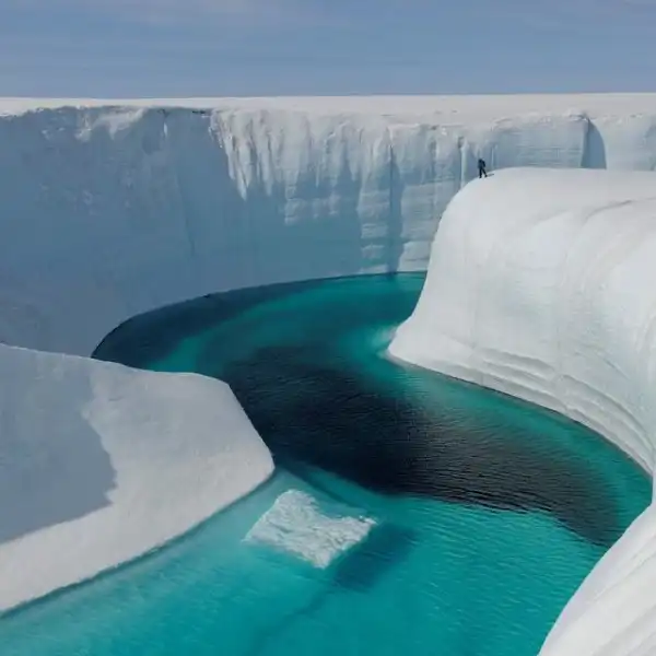 Ледяной каньон в Гренландии достигает 30 — 40 метров глубиной. История этого места говорит, что когда-то оно было полностью покрыто снегом. Ошеломляющий Каньон был вырезан Талой водой и является одним из самых узнаваемых мест страны. Гренландия известна всеми видами спорта, отдыхом и также туризмом. Природа здесь не так пострадала от деятельности человека. Красивые пляжи, огромные и красивые ледники, которые рождают эти огромные ледяные города — территория очень красива и живописна. Фактически, Ледяной Каньон Гренландии одно из наиболее фотографируемых мест на земле.
