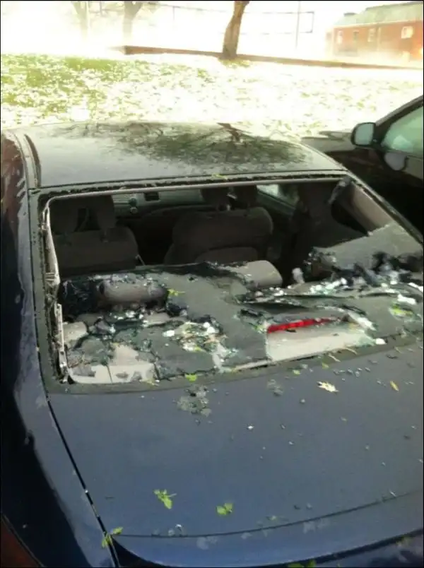 Град размером с бейсбольный мяч пробил крыши многих домов и стекла автомобилей.
