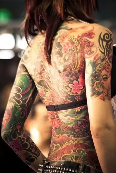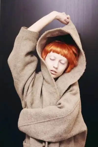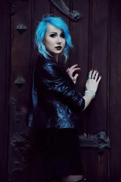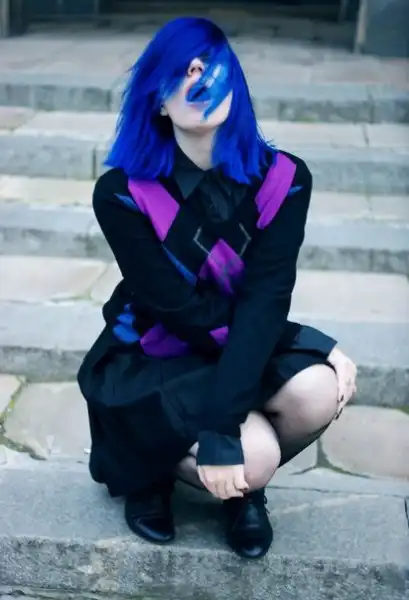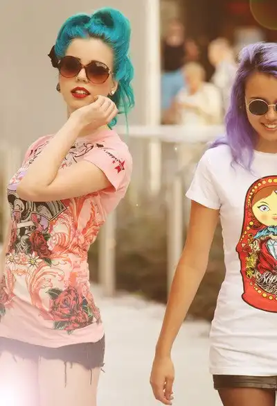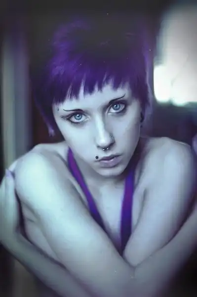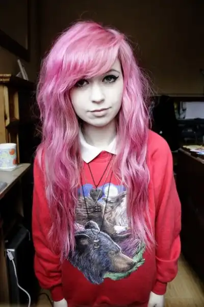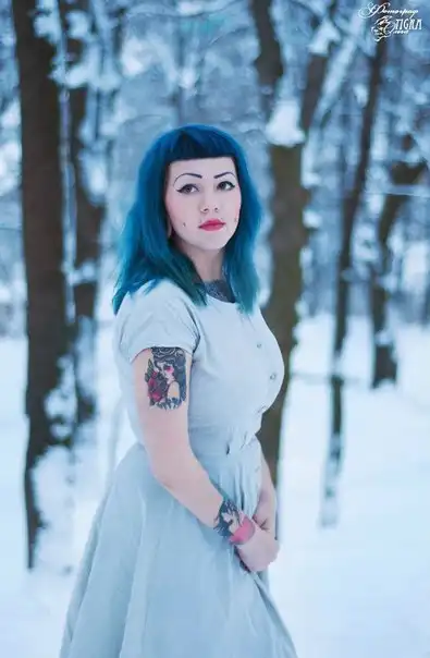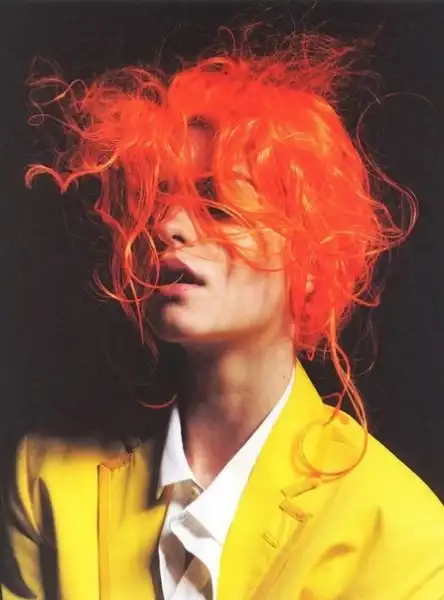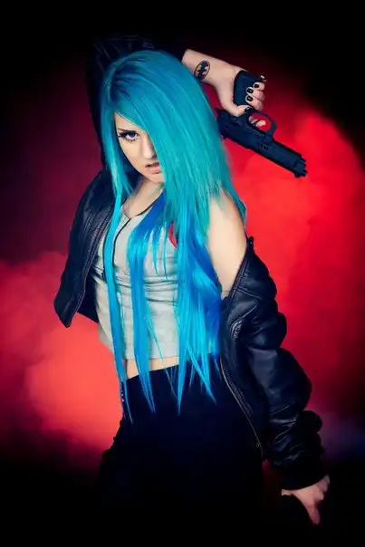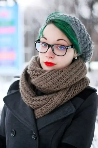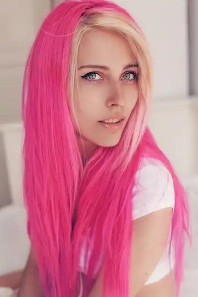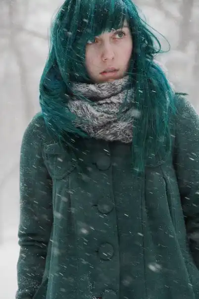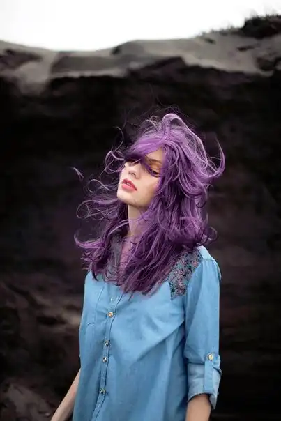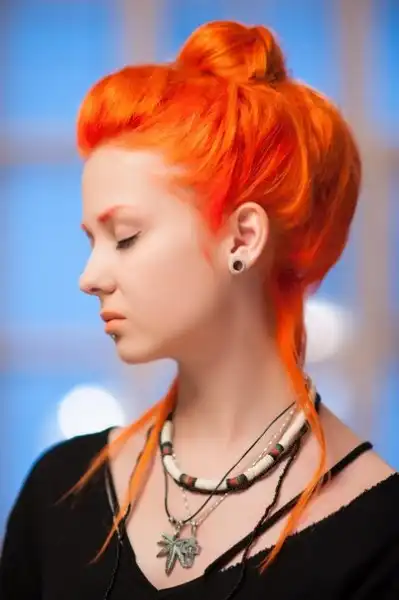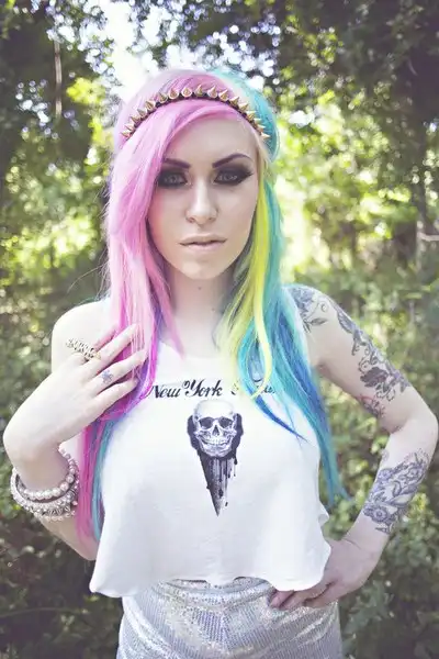 С цветными волосами.