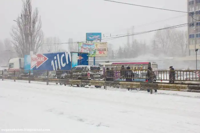 Город застыл: перестали ездить трамваи, троллейбусы, маршрутки, автомобили.