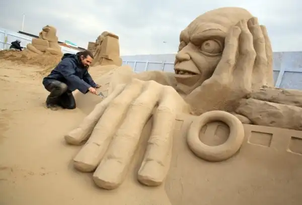В приморском городке Уэстон-сьюпер-Мэр проходит фестиваль скульптуры из песка, на который съехались мастера со всего света. Накануне Пасхи среди всех участников будет выбрана тройка самых лучших мастеров.