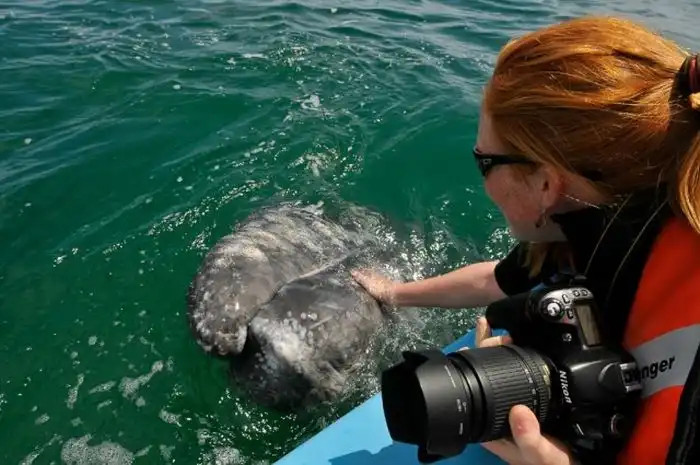 была приятно шокирована неожиданной встречей с самкой серого кита с детенышем.