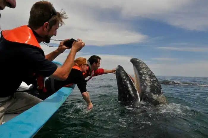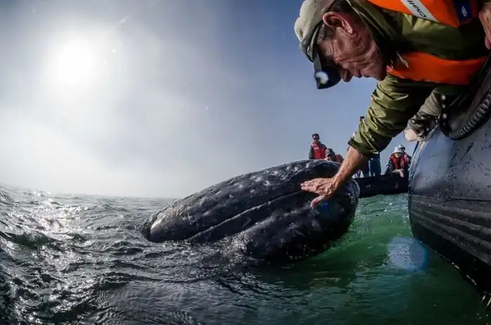 Многие гладили китов, а самые смелые даже целовали огромное морское животное.