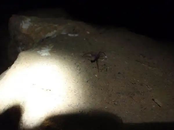 Cлепой паук Agraecina cristiani наощупь патрулирует надводную часть грота в поисках коллембол и мокриц. Обитатели пещеры слепы и ориентируются на ощупь и по запаху (точнее, по химическому чувству – у беспозвоночных обоняние зачастую неотделимо от вкуса), а также улавливая малейшие вибрации камня, воздуха или воды.