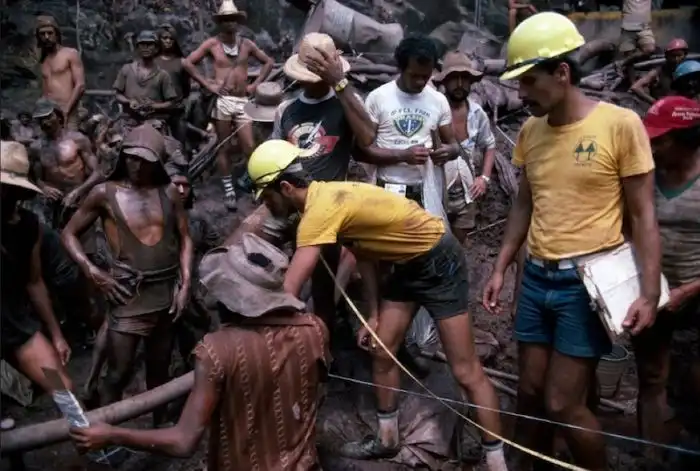 добывают золото в Золотоносной Серра-Пеладе в Бразилии.