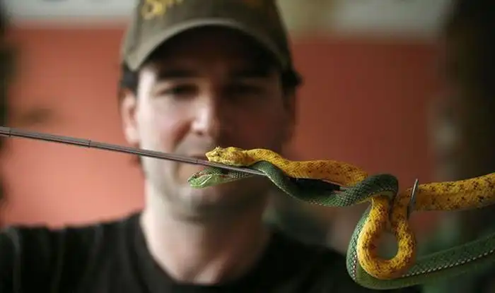 Он постоянно делает себе внутривенные уколы ядов, добытые у различных змей.