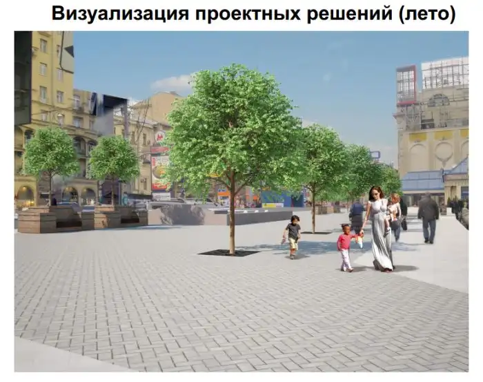 на Пушкинской площади, а также установка 60 деревьев и 619 кустарников в кадках.