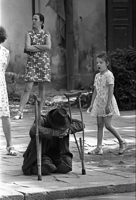 Кадр с самой несчастливой судьбой. Я его сделал на Западной Украине, в городе Ивано-Франковске. В те дни туда съехалось достаточно большое количество иностранцев из соцлагеря, много корреспондентов. Я шел в пресс-центр из гостиницы и увидел такую сценку на автобусной остановке. Буквально два раза нажал. На меня набросился какой-то военный, стал кричать на весь Ивано-Франковск, что я порочу советский образ жизни, почему я снимаю инвалидов, откуда я взялся.