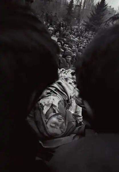 Я снимал что-то в Грузии — и вдруг сошла лавина в Сванетии. Один мужчина-сван оказался внизу, когда сошла лавина на его село, и вот по горным дорогам мы вместе поехали на место трагедии. Наша дорога заняла три или четыре дня. Приехали — всё селение разрушилось. Я начал снимать. Никого не было на улицах, никого абсолютно. И вдруг я увидел, вот к этому остатку дома поднимаются вот эти люди — мужчина, женщина и ребенок, они несут в руках стаканчики маленькие с чачей или с водкой. У мужчины на груди портрет погибшего под лавиной его родственника. Я понимаю, что я сейчас могу сделать достаточно такой жесткий кадр. Они идут. Я знаю, где его делать, знаю, как его делать. Жду. Вот они подходят, я поднимаю аппарат к глазам, один раз нажимаю. Тишина полнейшая — горы. И мужчина этот на меня посмотрел. За спиной у меня стоит мой сван, с которым я приехал, вот он мне положил руку на плечо и говорит: «Ему не нравится, что ты фотографируешь».