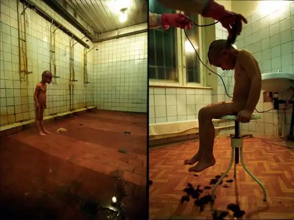 Вот этого мальчика когда стригли, с него вши прыгали, метра на три от него. Я еле успевал отмахиваться, думал, что сам весь завшивлю, пока его снимал.