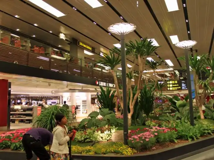 На территории аэропорта имеется пять садов под открытым небом, включая сад подсолнухов на крыше
