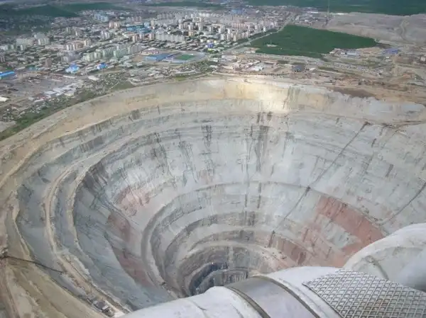 Шахта Мирная является бывшим открытым алмазным рудником, расположенным в Мирном, что в Восточной Сибири. Во время ее закрытия в 2004, шахта достигала 525 метров в глубину и 1,200 метров в ширину, что сделало её вторым по величине выкопанным отверстием в мире после шахты каньона Бингхэма. Отверстие столь большое, что воздушное пространство над шахтой закрыто для вертолетов из-за инцидентов, в которых они были затянуты нисходящим воздушным потоком.