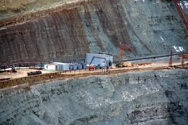 Горная промышленность началась здесь в 1957, в чрезвычайно резких условиях климата. Сибирская зима продлилась семь месяцев, которые заморозили землю, делая ее твердой как бетон. В течение коротких летних месяцев вечная мерзлота превратилась бы в грязь, превращая всю добычу полезных ископаемых в купание в болоте. Здания должны были быть подняты на сваях так, чтобы они не были затоплены летом. Главное предприятие по переработке должно было быть основано на прочной земле, найденной на расстоянии в 20 км от шахты. Зимние температуры были так низки, что автомобильные шины и сталь разрушались, а топливо замерзало. В течение зимы рабочие использовали реактивные двигатели, чтобы прогревать слой вечной мерзлоты, или взрывали его с динамитом, чтобы получить доступ к основному кимберлиту. Вся шахта полностью накрывалась ночью, чтобы препятствовать замерзанию оборудования.