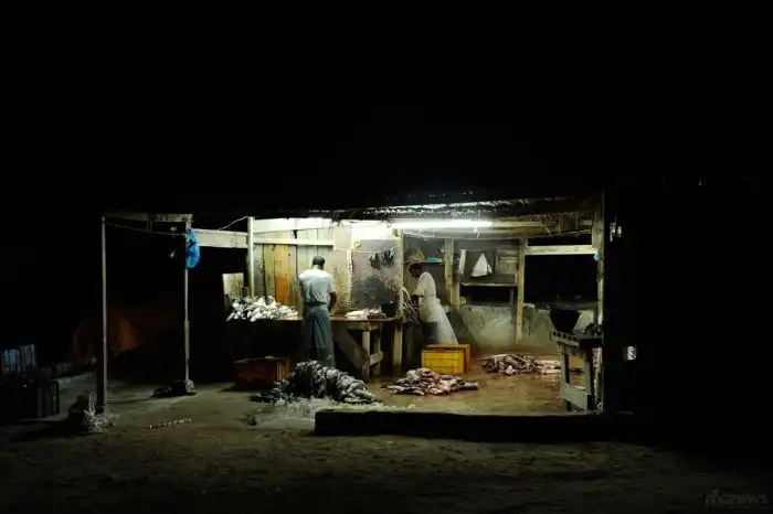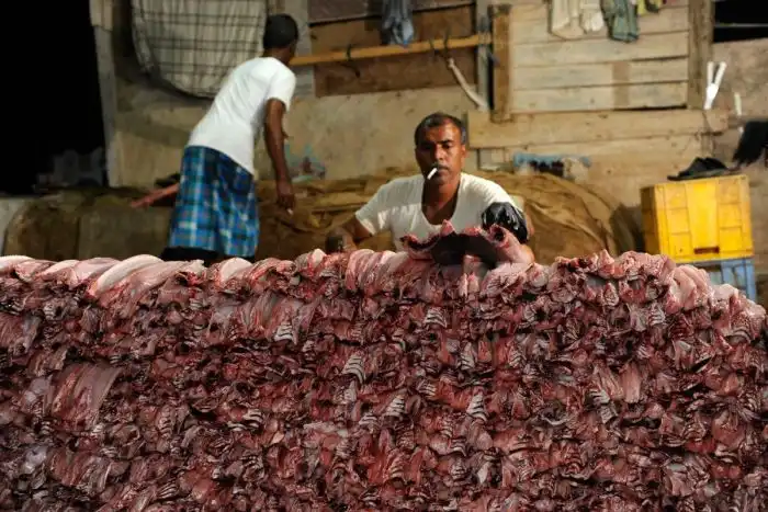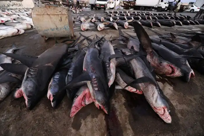 Акулий промысел ведется практически повсеместно в акватории Аравийского полуострова. Улов одного судна за ночь составляет около 100 акул. Улов (среди которого разнообразные виды акул, от небольших шелковых и молотовидных до огромных тигровых акул и акул-быков) волокут бригадами по несколько человек на пристань, где выкладывают стройными рядами для аукциона. По окончанию аукциона проданную партию акул загружают в грузовики-морозильники, а уже через несколько минут к пристани подходит очередная лодка с новыми акулами. Торги длятся с утра до вечера и за это время продается более 1000 туш. Грузовики, груженные акулами и их плавниками, напрявляются в Дубай, который входит в пятерку основных поставщиков плавника, предназначенного для Гонконга.