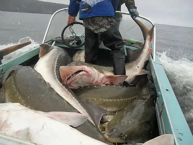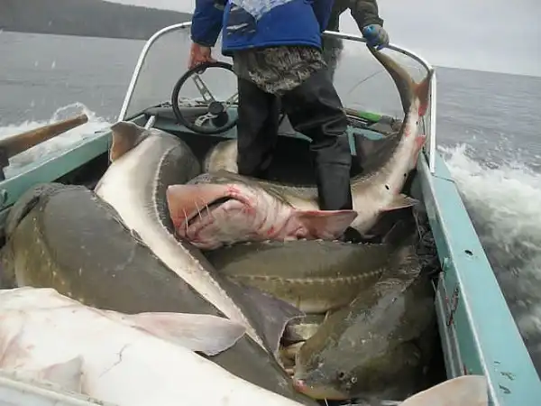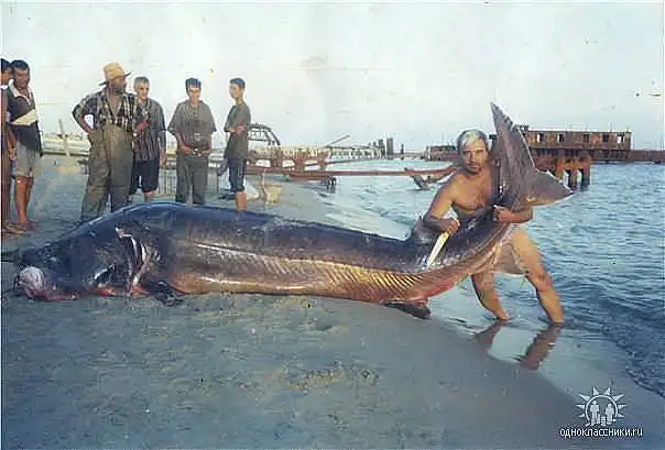Браконьеры *б...чертовы!!! Лопатоносого осетра не прощу, гады-десятая фотка-это, вашу мать, редчайшая рыба теперь из=за таких как они! Белуги и сомы подобного размера, как тут показали, тоже растут по 30-40 лет и их нужно довольно скоренько обрабатывать (особенно белуг), а не фоткать, когда уже померли-такая рыба исключительно быстро пропадает на воздухе...т.е., получается бессмысленное убийство шикарной рыбы ради фотки