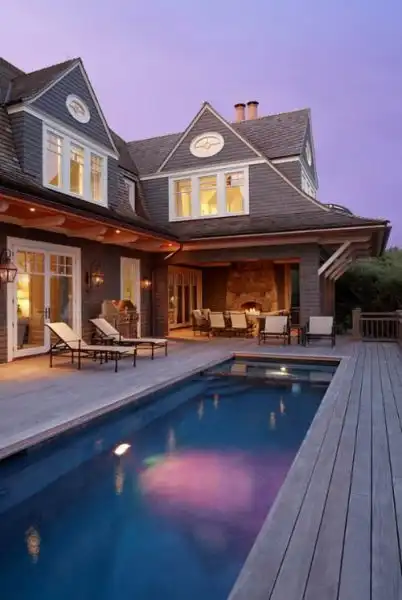 прикольно, есть к чему стремится, особенно бассейн в доме, но только без второго света над ним, а то однозначно найдутся желающие оттуда сигануть в бассейн, не дай бог что случится...