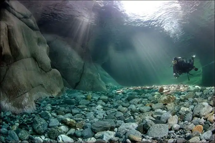 Маленькая швейцарская река под названием Верзаска известна во всем мире.Ее вода настолько прозрачна, что на глубине 15-ти метров можно увидеть мост, который пролегает через нее.Удивительно.