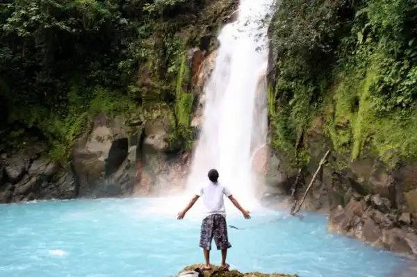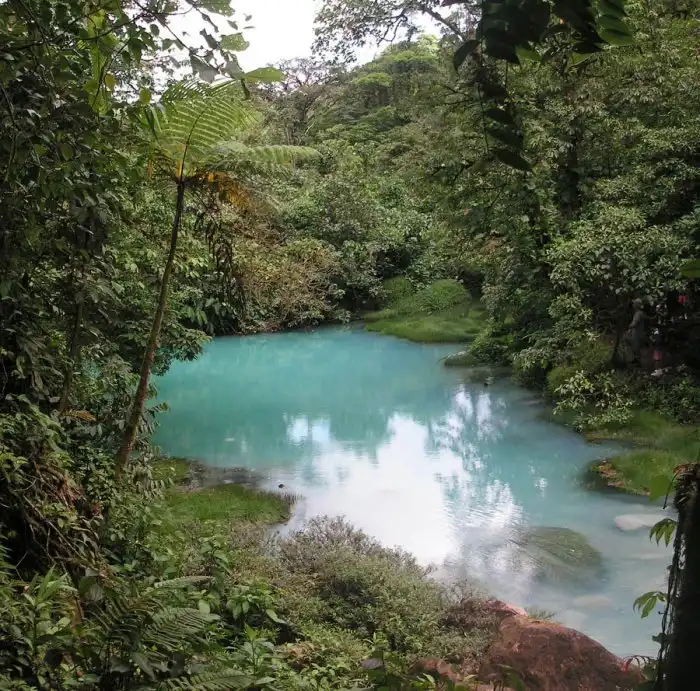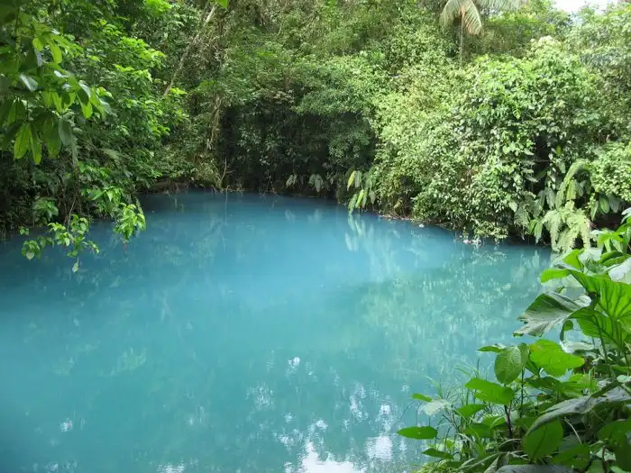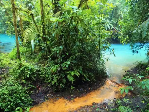 В Коста-Рике в национальном парке Tenorio Volcano течет необычная река Селесте, имеющая бирюзовый цвет. Этот окрас вода получает в результате химического взаимодействия двух веществ, карбоната кальция и серы, источником которой служит находящийся поблизости вулкан.