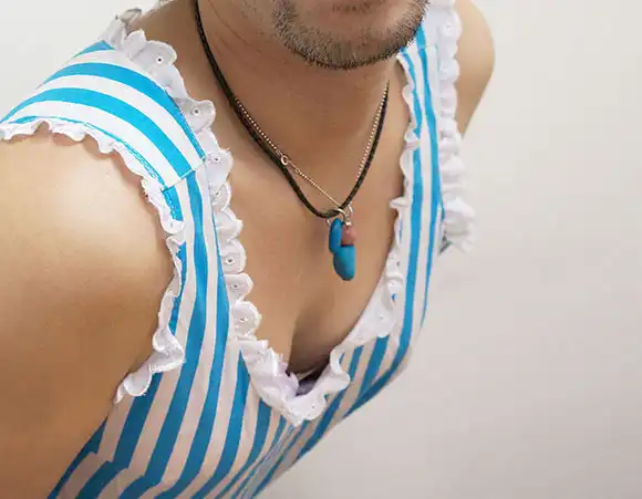 Поскольку он запасся второй парой силиконовых грудей, финальный результат ожидался потрясающим. Иллюзия была готова, когда реальный бюстгальтер был одет сверху.