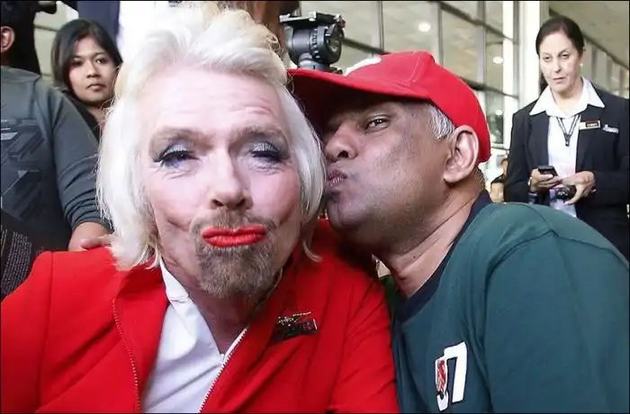 Знакомьтесь, этого мужчину зовут Ричард Брэнсон, и он является основателем авиакомпании Virgin. На днях этот миллиардер проиграл пари со своим другом, который является директором авиакомпании AirAsia, а условием спора было то, что проигравший участник пари должен будет на один полет стать стюардессой на авиарейсе Перт — Куала-Лумпур :) Конечно же, Брэнсон, как человек слова, выполнил условие спора. Он побрил ноги, надел униформу и выполнял все функции стюардессы во время полета ;) Кстати, спорили они по поводу результатов заезда Формулы-1.