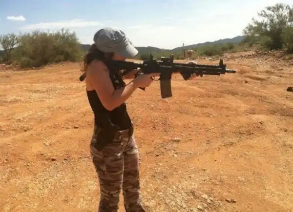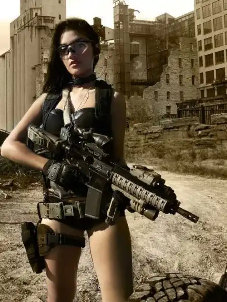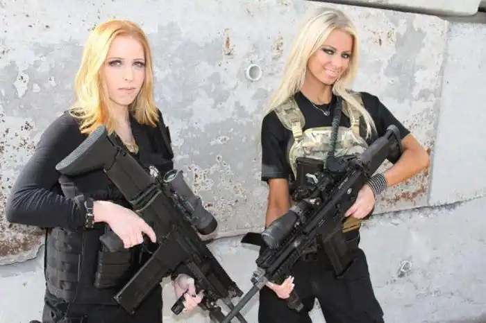 Грозное оружие в руках красивой девушки это и опасно и сексуально!