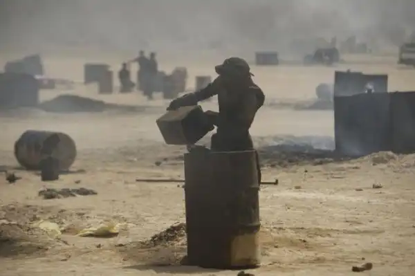 Пока власти Сирии наводят у себя порядок в стране, местное население начало осваивать брошенные нефтяные месторождения.Соорудив из подручных материалов нефтеперерабатывающие установки по принципу самогонных аппаратов, местные жители наладили производство изготовления бензина.