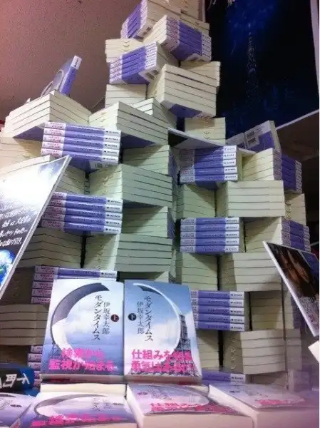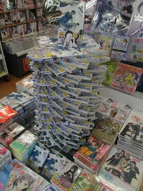 В японских книжных магазинах, где полки завалены не только книгами, но и журналами, комиксами и манга, довольно сложно обратить внимание покупателя на какой-то определенный товар. Поэтому тамошние продавцы осваивают искусство фигурного раскладывания книг. Представляю, как отреагирует консультант, если кто-то ненароком заденет одну из таких скульптур.