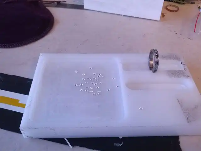 Весь процесс задокументирован в блоге автора. Первым делом проект создаётся в программе AutoCAD для 3D-моделирования: нужно рассчитать, чтобы после добавления деталей кольцо вышло правильного внутреннего диаметра, размеры камней и углублений под них, а также расстояние между углублениями.