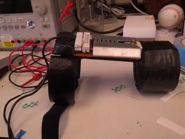 Обмотку-передатчик с источником питания жених должен носить на руке. Дизайн передатчика позаимствован здесь. Прибор вышел довольно массивным, но его всё-таки можно незаметно спрятать в рукав.