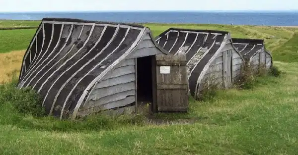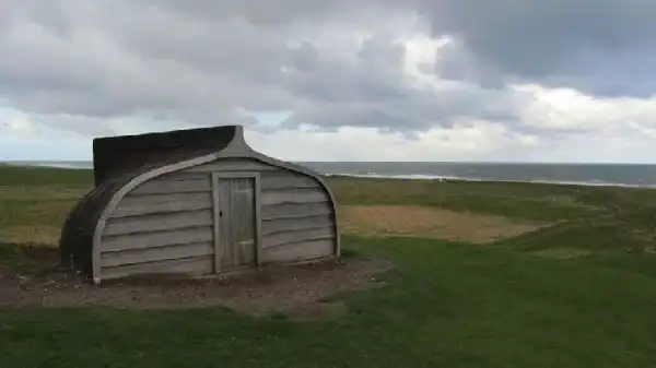 Хижины, сделанные из лодок, Холи-Айленд, Англия