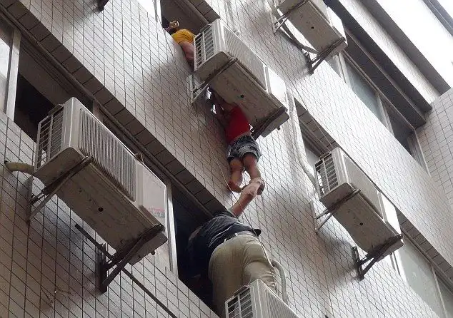 Это уже не первый случай, когда кондиционер спасает жизнь человеку. На этот раз, китайский 5-летний мальчик выпал из окна и застрял между стеной и кондиционером, что дало возможность спасателям подоспеть вовремя и спасти ребенка.