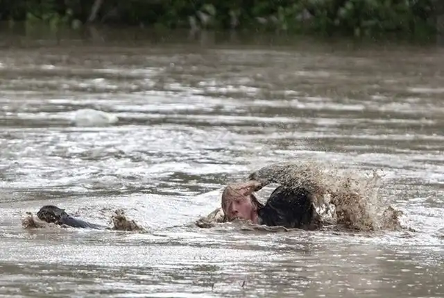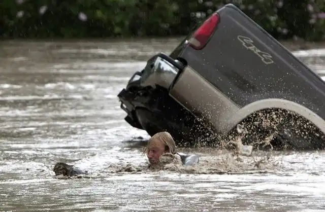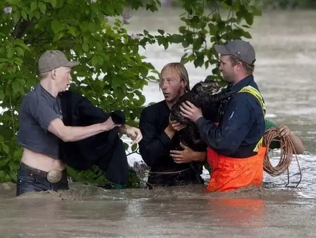 Во время наводнения в Альберте (Канада) смелый парень не бросил своего друга в беде и в прямом смысле слова спас ему жизнь.